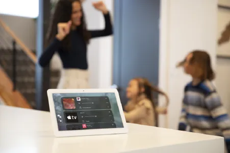 Replace stacks of remotes with a single sophisticated solution. Whether through a sleek app, a touch panel, or simple voice command, manage TVs, speakers, and streaming with ease.